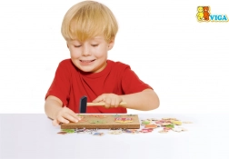 Kreatívna korková pritlkačka farma od značky Viga rozvíja jemnú motoriku, logické myslenie a kreativitu detí od 3 rokov. Vďaka 24 dreveným dielikom, korkovej doske, malému kladivku a špendlíkom si deti tvoria vlastné farmárske scény podľa fantázie alebo predlôh. Bezpečné zaoblené hrany a odolné prevedenie zaistia veľa zábavy aj učenia.