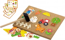 - 24 drevených dielikov, korková doska, kladivko, špendlíky, karty s predlohami