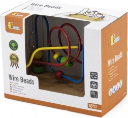 Farebné koráliky na kľukatých dráhach motivujú deti k posúvaniu a triedeniu, čím rozvíjajú úchop, koordináciu oko–ruka a trpezlivosť.