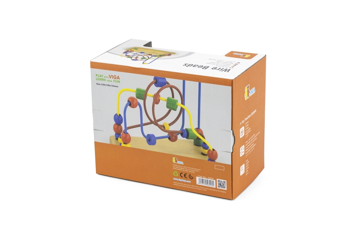 Tento kvalitný drevený labyrint s korálikmi je ideálnou pomôckou na rozvoj detských zručností. Vďaka plynulému posúvaniu korálikov po rôzne tvarovaných drôtoch si deti trénujú úchop, koordináciu pohybov a vizuálne vnímanie. Robustná drevená základňa poskytuje stabilitu, zatiaľ čo hladké hrany a sýte farby podporujú bezpečné a atraktívne hranie.