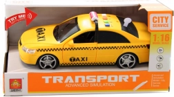 Zábavné plastové taxi pre deti od 3 rokov ponúka svetelné efekty, realistické zvuky a otváracie dvere. Napájanie zabezpečujú 3× AG13 batérie, ktoré sú súčasťou balenia. Ideálna hračka na rozvoj fantázie a hru na mesto.