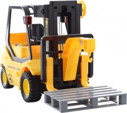 Realistický plastový vysokozdvižný vozík v mierke 1:14 poteší malých staviteľov od 3 rokov. Po stlačení tlačidla vydáva zvuky a svieti, čo umocňuje realistickú hru na sklad či stavbu. Napájanie zabezpečujú 3× AG13/LR44 batérie, ktoré sú súčasťou balenia.