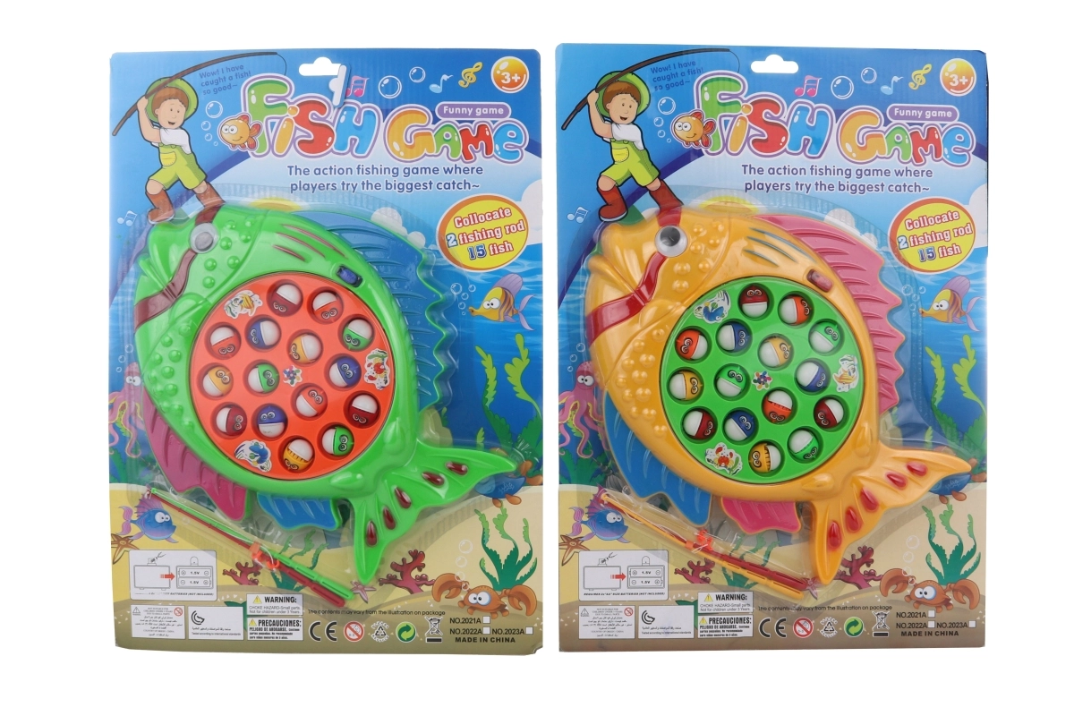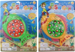 Zábavná rodinná hra pre deti od 3 rokov: točiace sa rybky otvárajú pusinky a hráči ich chytajú pomocou dvoch prútov. Rozvíja motoriku, trpezlivosť a postreh. Veľký herný tanier s rotáciou, napájanie 2× AA (nie sú súčasťou).