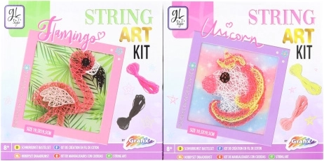 Táto kreatívna sada ti umožní vytvoriť vlastné šnúrkové obrázky, ktoré budú skvelou dekoráciou do tvojej izby. Balenie obsahuje penovú dosku, rámik, klince, 4 rôzne farby bavlniek a ďalšie potrebné doplnky na zostavenie obrázkov.