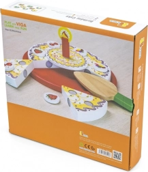 Štýlová drevená torta na krájanie od značky VIGA prináša deťom od 18 mesiacov hodiny fantazijnej hry. Farebné dieliky sa ľahko „krájajú“ a znova skladajú, čím rozvíjajú jemnú motoriku, koordináciu oko–ruka a spoluprácu pri hre na narodeninovú oslavu.