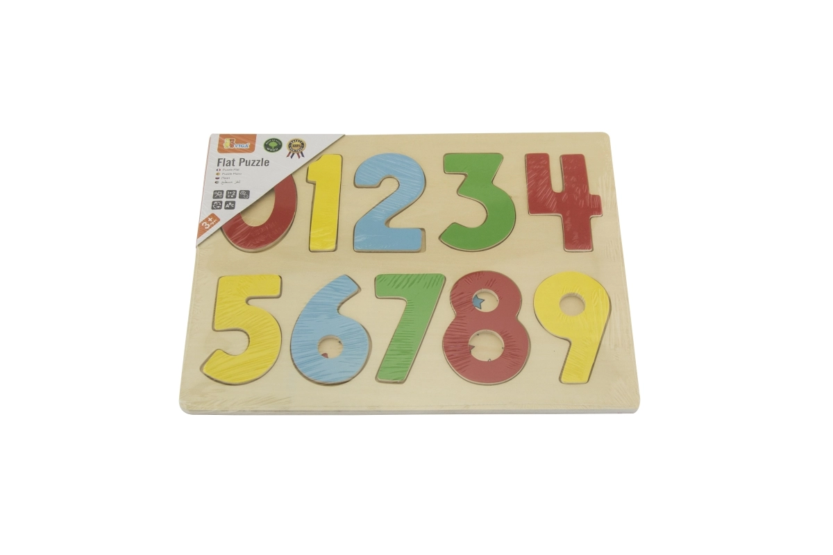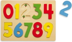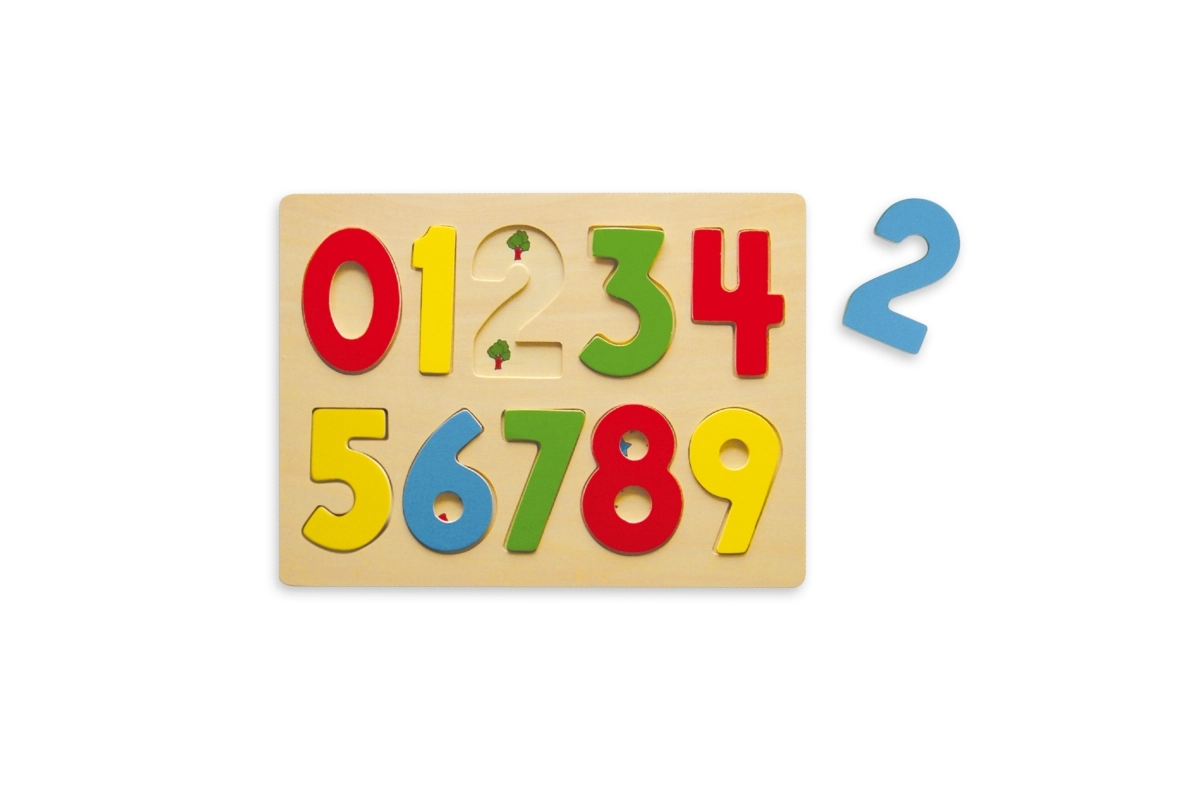 Táto drevená číselná vkladačka ponúka desať samostatných farebných dielikov s číslami 0–9, ktoré sa vkladajú do zodpovedajúcich výrezov. Deti si prirodzene osvoja rozpoznávanie číslic a precvičia si trpezlivosť aj sústredenie.