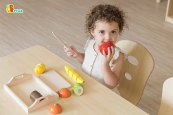 Vďaka suchému zipsu ovocie možno jedným pohybom krájať a znovu spájať, čo podporuje rozvoj jemnej motoriky.