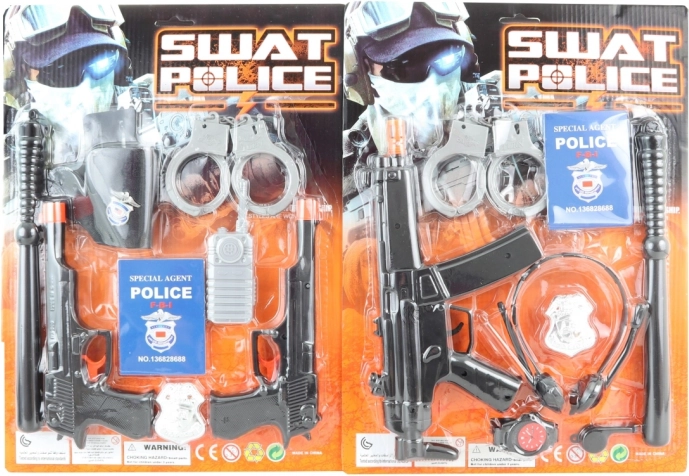 Staňte sa malým strážcom zákona s touto bohato vybavenou policajnou sadou. Obsahuje všetko, čo malý policajt potrebuje: putá, preukaz, odznak, obušok, samopal, slúchadlá, hodinky, píšťalku a variantne 2 pištole s puzdrom a vysielačku. Ideálne pre deti od 3 rokov a skvelé na hranie rolí aj rozvoj fantázie.