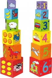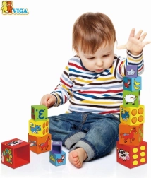Každá kocka je farebne označená a zdobená obrázkami - zvieratká, čísla, ovocie a doprava. Táto všestrannosť prináša množstvo možností pre objavovanie a učenie.