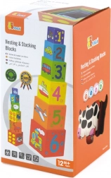 Navrhnuté pre deti od 12 mesiacov. Rozmery najväčšej kocky sú 11 x 11 cm, čo je ideálne pre malé ruky.