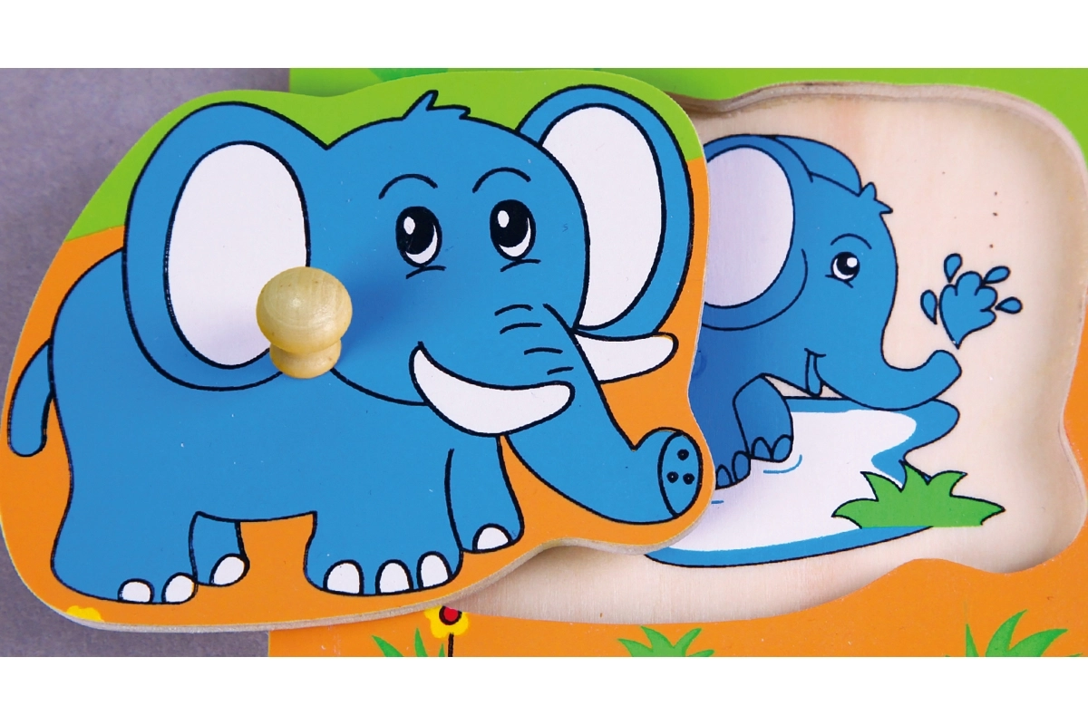 Táto kvalitná drevená vkladačka so safari motívom je ideálna prvá skladačka pre batoľatá. Každý dielik má drevený kolíček na ľahké uchopenie malými rúčkami a zodpovedajúcu siluetu na podkladovej doske pre ľahšiu orientáciu.