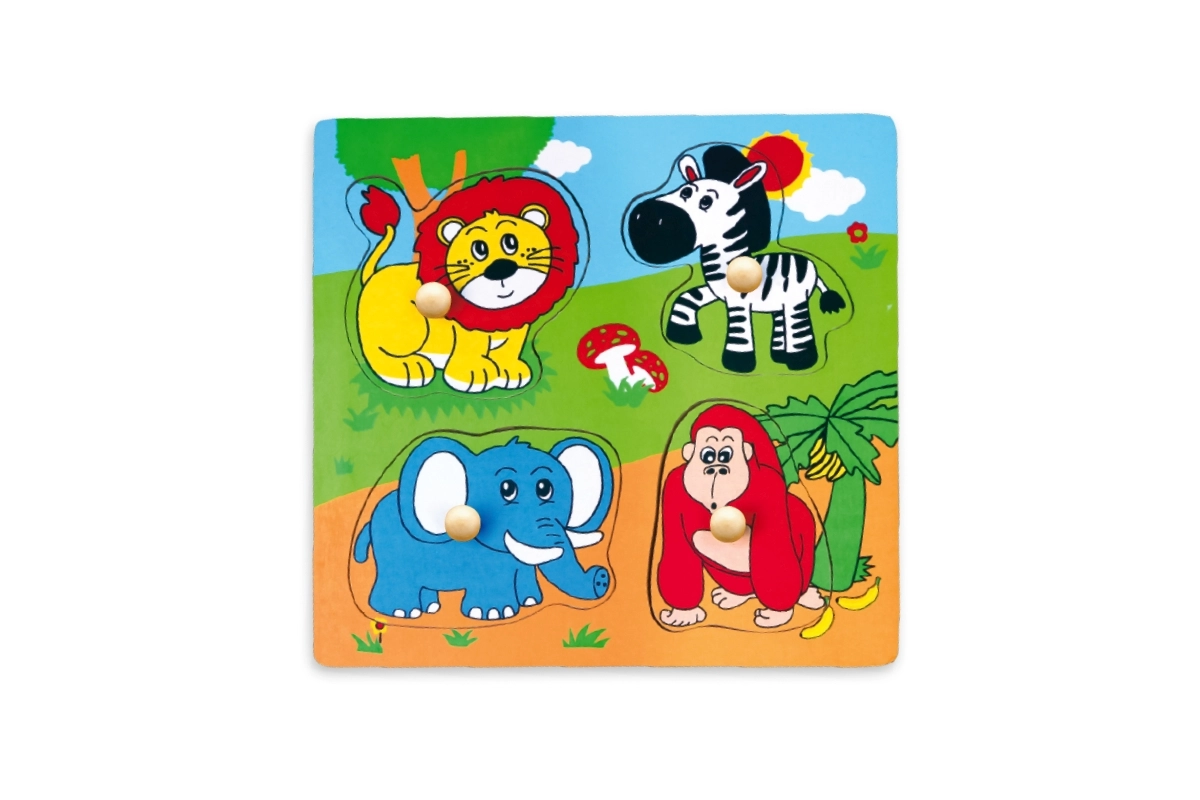 Objavte prvé puzzle pre najmenších: drevená vkladačka so zvieratkami zo safari s praktickými úchytmi. Podporuje jemnú motoriku, koordináciu oko–ruka a rozpoznávanie tvarov a zvierat. Farebné prevedenie a bezpečné spracovanie poteší deti od 12 mesiacov.
