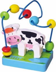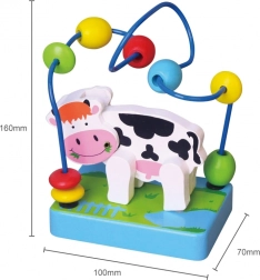 Drevený labyrint s kravičkou je zábavnou hračkou, ktorá rozvíja jemnú motoriku a farebnú rozoznateľnosť u detí.