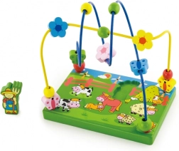 Drevený korálkový labyrint Farma s magnetickým farmárom