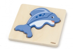 Táto drevená puzzle vkladačka s modrým delfínom je skvelou voľbou pre prvé skladania. Vďaka robustnej drevenej podložke a dobre padnúcim dielikom si deti ľahko precvičia koordináciu oko–ruka a trpezlivosť. Hračka je navrhnutá s ohľadom na bezpečie a dlhú životnosť.