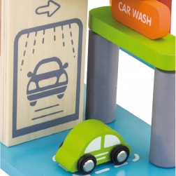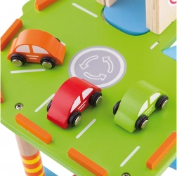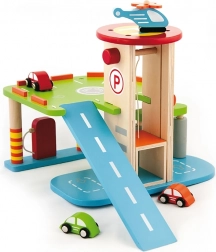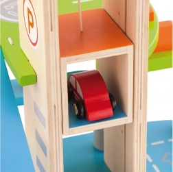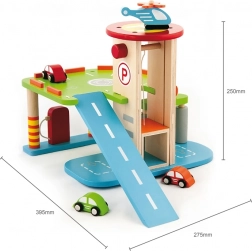 Táto kvalitná drevená garáž ponúka viac úrovní parkovania, pristávaciu plochu pre helikoptéru a praktický výťah na jednoduché presúvanie autíčok medzi poschodiami. Vďaka premyslenému dizajnu s dráhami, značkami a doplnkami si deti precvičia koordináciu pohybov a rozvinú svoju predstavivosť.