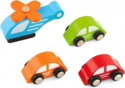 Súčasťou balenia sú 3 drevené autíčka a helikoptéra, takže môžete začať hrať hneď po vybalení. Bezpečné zaoblené tvary a odolné materiály sú ideálne na každodenné hranie.