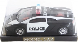 Policajné auto na zotrvačník. Rozmery auta cca 22 x 9 x 7 cm. Rozmery balenia cca 26 x 13 x 10 cm. Vek 3+