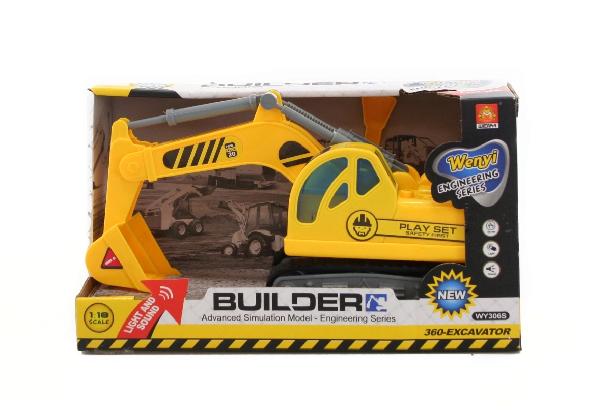 Bager na batérie s rozmermi cca 24 × 12 cm. Rozmery balenia cca 25 × 10 × 14 cm. Napájanie 3× batéria AG13 (súčasť balenia). Bager vydáva zvuky a svieti. Vek 3+