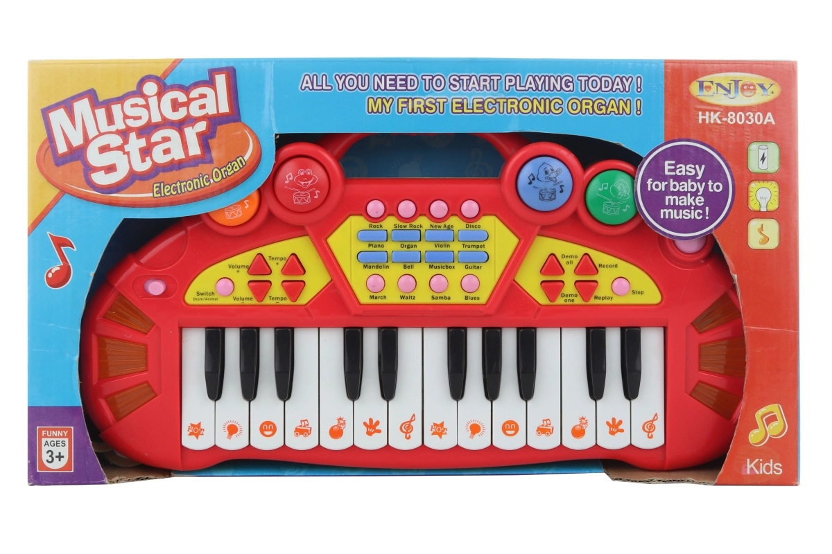 Objavte radosť z hudby s detským pianínom, ktoré kombinuje jednoduché hranie s roztomilými zvukmi zvieratiek. Vďaka prehľadnému rozloženiu kláves a odolnému plastovému prevedeniu je vhodné na každodenné hranie aj prvé hudobné pokusy.