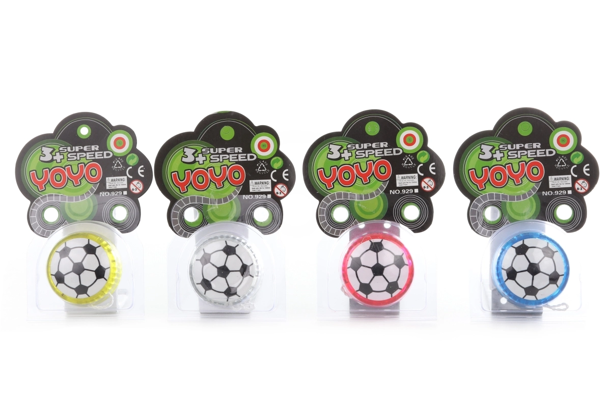 Zábavné plastové jojo s motívom futbalovej lopty, ktoré sa pri točení rozsvieti. Ideálne pre deti od 3 rokov, rozvíja motoriku a zábavu na cestách vďaka kompaktným rozmerom.