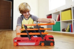 S Mega Transportérom Hot Wheels si užijete neobyčajnú hru, či už doma alebo na cestách. Tento veľký transportér ponúka neuveriteľné možnosti: