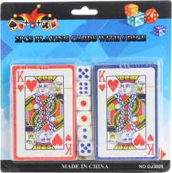Užite si hodiny zábavy s touto univerzálnou sadou na kartové aj kockové hry. Dva plnohodnotné balíčky žolíkových kariet dopĺňa šesť hracích kociek, takže môžete striedať obľúbené hry podľa nálady. Kompaktné rozmery balenia uľahčujú cestovanie a skladovanie.