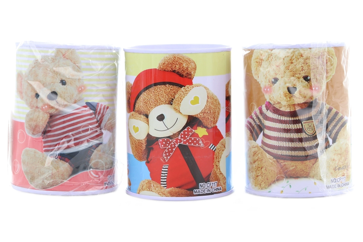 Roztomilá kovová pokladnička pre deti s rôznymi motívmi, ako sú autíčka a medvedíky. Ideálna na prvé sporenie a rozvoj finančnej gramotnosti. Pevná kovová konštrukcia, praktická veľkosť 10 × 7,5 cm a pestré detské motívy potešia každého malého sporiteľa. Vhodné od 3 rokov.