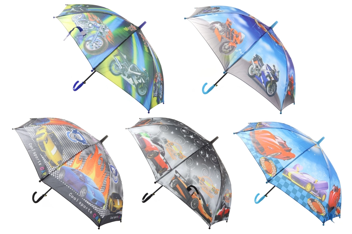 Užite si spoľahlivú ochranu pred dažďom s dáždnikom, ktorý zaujme atraktívnym dizajnom s autami a motorkami. Vďaka automatickému (vystreľovaciemu) mechanizmu ho otvoríte jedným stlačením, čo oceníte pri náhlych prehánkach aj na ceste do školy či do práce.