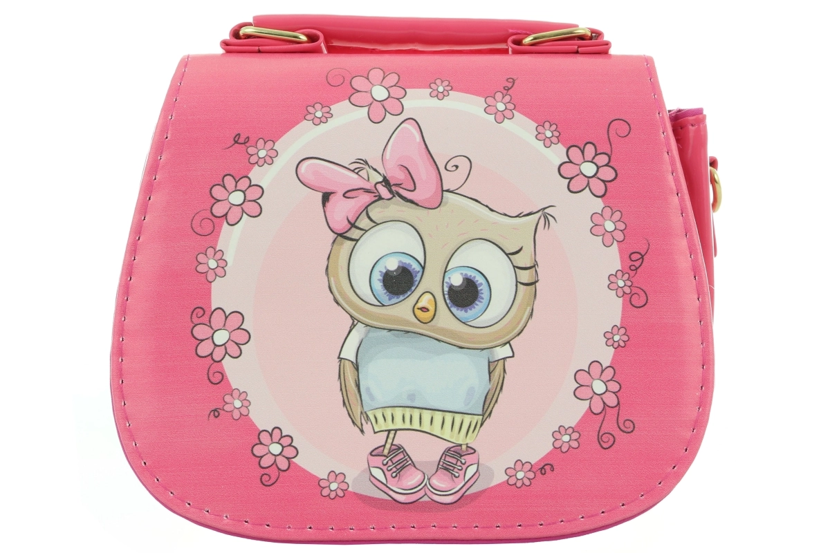 Táto ružová kabelka s veselou sovičkou je perfektná prvá kabelka pre malé slečny. Vďaka kompaktným rozmerom sa deťom dobre nosí a pojme všetky nevyhnutnosti ako vreckovky, drobnú hračku alebo malú peňaženku. Hravý motív podporuje fantáziu a robí z kabelky štýlový doplnok na každý deň.