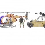 - Kompletná sada: vrtuľník, obrnené auto a vojak