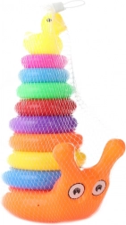 Roztomilý stĺp s krúžkami v tvare slimáka poteší každé batoľa. Vďaka postupnému navliekaníu krúžkov si deti precvičia trpezlivosť, logické myslenie a zručnosť. Posledným dielom je plastová kačička, ktorá dáva hre zábavný a motivujúci cieľ.