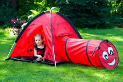 Premeňte izbu alebo záhradu na miesto plné dobrodružstiev. Detský stan s motívom lienky láka deti k objavovaniu a tvorivej hre. Iglu konštrukcia s jedným vstupom a napojením pre tunel podporuje pohyb, preliezanie a schovávanie, čo rozvíja motoriku aj fantáziu. Vďaka ľahkému rámu stan ľahko prenesiete, takže si ho deti užijú kdekoľvek.