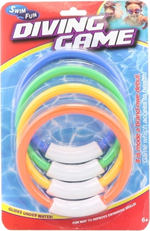 Tieto potápačské krúžky spestria každú vodnú aktivitu. Vďaka svojej vyváženej konštrukcii sa po vhodení rýchlo potápajú a na dne bazéna stoja kolmo, takže sú pre deti aj dospelých ľahko viditeľné a dobre uchopiteľné.