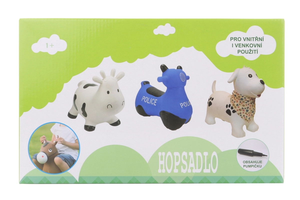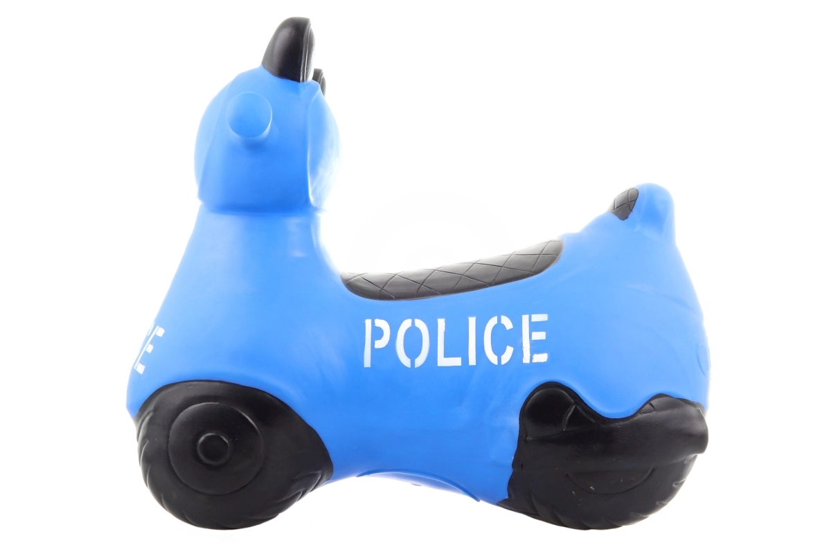 Zábavné gumové hopsadlo v tvare motorky s policajným motívom pre deti od 1 roka. Podporuje rozvoj rovnováhy, hrubej motoriky a koordinácie, je stabilné, odolné a ľahko sa čistí. Súčasťou balenia je pumpička na rýchle nafúknutie.