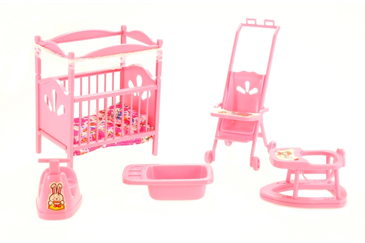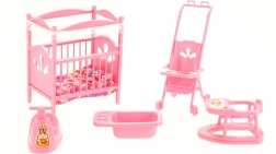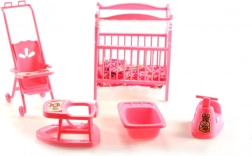 Kompletná sada do detskej izbičky pre bábiky GLORIE poteší každého malého opatrovateľa. Nájdete v nej postieľku s perinkou a vankúšikom, kočík, chodítko, nočník a vaničku – všetko z odolného plastu a vo veľkostiach ideálnych na hru. Skvelé na rozvoj fantázie a hraní rolí. Vhodné od 3 rokov.