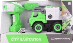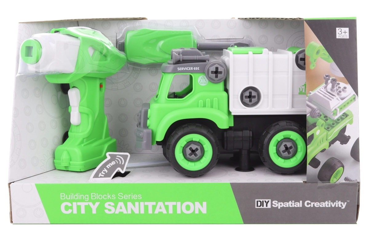 Zábavné a vzdelávacie skrutkovacie smetiarske auto na diaľkové ovládanie pre deti od 3 rokov. Deti si vozidlo jednoducho zostavia pomocou priloženého skrutkovača alebo vŕtačky. Po vložení motorčeka do auta je možné ho ovládať dopredu a dozadu, auto navyše vydáva realistické zvuky. Interaktívna hra, rozvoj jemnej motoriky a jednoduché ovládanie v jednom.
