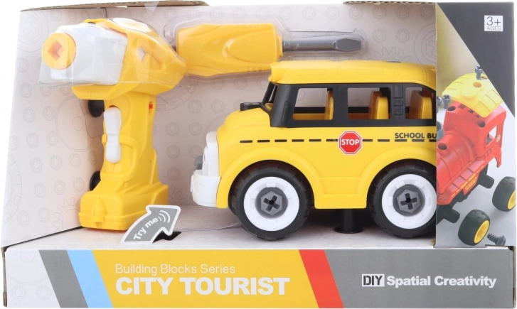 Zábavná stavebnica a RC hračka v jednom! Tento skrutkovací autobus si deti samy poskladajú pomocou skrutkovača alebo vŕtačky a potom ho môžu riadiť dopredu aj dozadu. Vďaka vyberateľnému motoru z vŕtačky, realistickým zvukom a jednoduchému ovládaniu ponúka hračka množstvo interaktívnej zábavy a rozvíja jemnú motoriku aj kreativitu. Skrutkovacia konštrukcia, RC ovládanie, zvukové efekty, ľahká montáž.