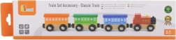 Drevená sada Klasický vláčik obsahuje 4 časti, ktoré sú spojené magnetmi. Táto hračka bola navrhnutá renomovaným výrobcom drevených hračiek, firmou Viga Toys. Sada môže byť použitá ako samostatná hračka, alebo ako doplnok k ostatným vláčikodráham, stavebniciam a sadám.