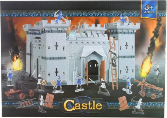 Hracia sada obliehania hradu. Obsahuje hrad s rozmermi cca 28 × 28 × 29 cm, rytierov a zbrane na obliehanie hradu. Rytieri cca 6 × 4 cm. Materiál plast. Rozmery balenia cca 36 × 25 × 7 cm. Vek 3+
