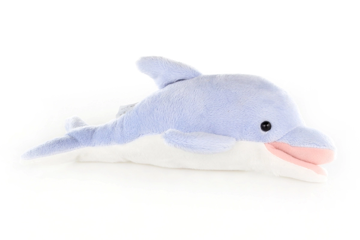 Roztomilý plyšový delfín v svetlomodrej farbe poteší malých aj veľkých milovníkov mora. Je mäkučký, príjemný na dotyk a ideálny na túlenie. Kompaktná veľkosť 25 cm sa hodí do postieľky aj na cesty, kvalitné spracovanie a jemný plyš zaistia bezpečnú a dlhú zábavu.