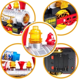 Lokomotíva má jasný predný svetlomet a zabudované melódie, ktoré podporia zmyslové vnímanie a udržia pozornosť detí.