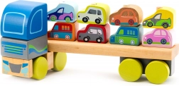Cubika predstavuje jedinečný drevený kamión s autami, ktorý deti nadchne svojou farebnosťou a dizajnom. Skladačka obsahuje 12 dielov a umožňuje prepravovať 8 miniatúrnych autíčok. Dĺžka kamiónu je 32 cm a jednotlivé autíčka merajú približne 5 cm. Hračka pomáha rozvíjať: