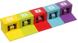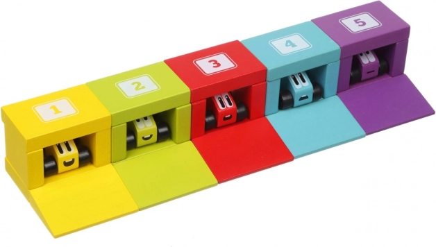 päť farebných autíčok a sada kociek premení každý deň na napínavé preteky – od štartu cez boxy až do garáže.