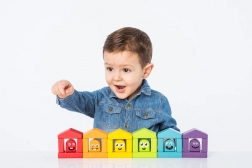 Šesť domčekov a ich farební obyvatelia motivujú deti k párovaniu a triedeniu. Deti si prirodzene osvojujú farby a rozvíjajú logiku aj pozornosť.
