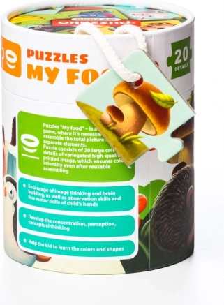 Veľké, silné kartónové dieliky sa deťom ľahko držia a skladajú. Puzzle sú uložené v praktickej uzavierateľnej tube s uškom, takže sú ideálne aj na cestovanie alebo ako darček. Vďaka jasným ilustráciám a intuitívnemu tvaru dielikov je skladanie prirodzené a motivujúce aj pre najmenších.