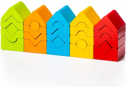 Skladačka umožňuje postaviť rôzne veže alebo vlastné stavby, čo rozvíja detskú kreativitu.