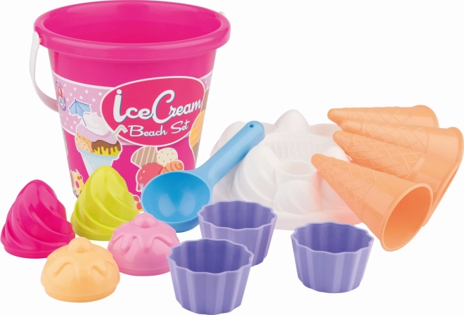 Vedierko, sitko v tvare zmrzlinového pohára, naberačka, 4 čapice zmrzliny, 4 kornútiky, 3 misky