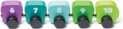 Desať dielikov očíslovaných 1–10 tvorí plynulú dúhovú škálu. Deti si upevňujú poradie čísel aj rozlišovanie farieb prirodzenou hrou.