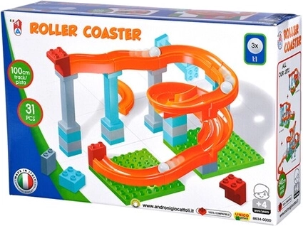 Malá guľôčková dráha Androni Unico Plus ponúka skvelú porciu zábavy a učenia v jednom. Vďaka 31 farebným dielom a 3 plastovým guľôčkam deti ľahko postavia trasu dlhú až 100 cm. Kocky sú plne kompatibilné s LEGO DUPLO, takže ich možno kombinovať s ďalšími stavebnicami a rozširovať možnosti hry.